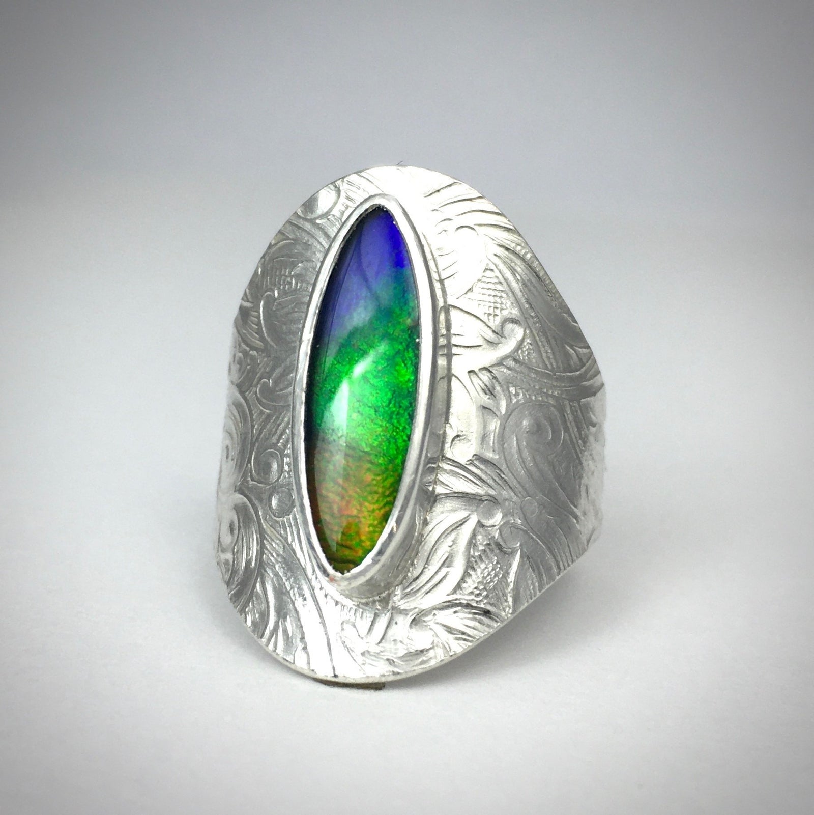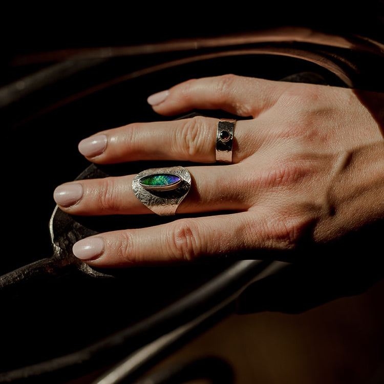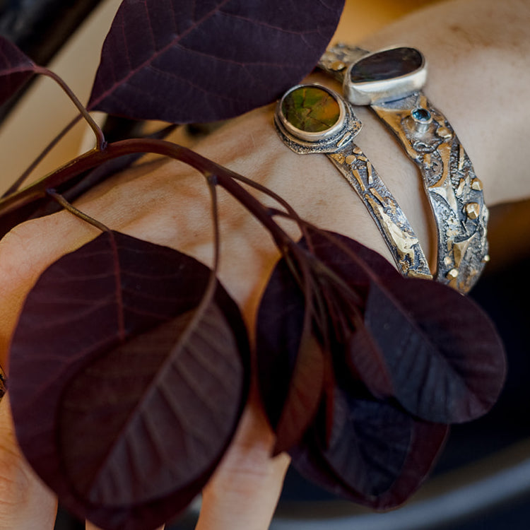 • Most of the silver and gold I use is recycled and/or sourced from certified mines, and I recycle the scraps created during production. I work with both precious and semi precious gemstones. Most of the stones that I use are ethically sourced, and/or purchased directly from the lapidarist right here in British Columbia.